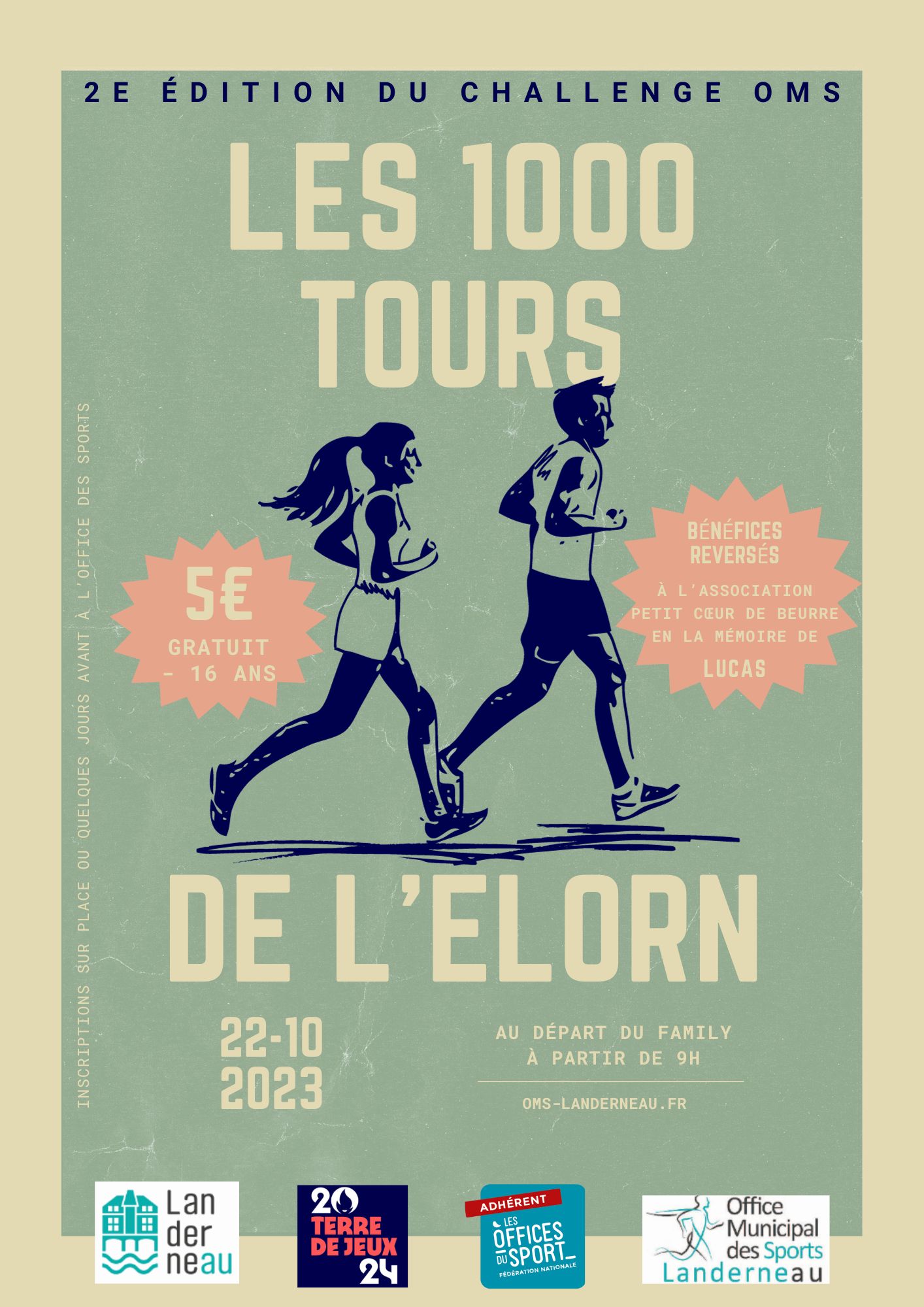 Nous invitons nos adhérent(e)s et leurs familles et amis à venir participer au second challenge des 1000 tours de l'Elorn le dimanche 22 octobre organisé par l'OMS. Vous pouvez venir courir ou marcher.